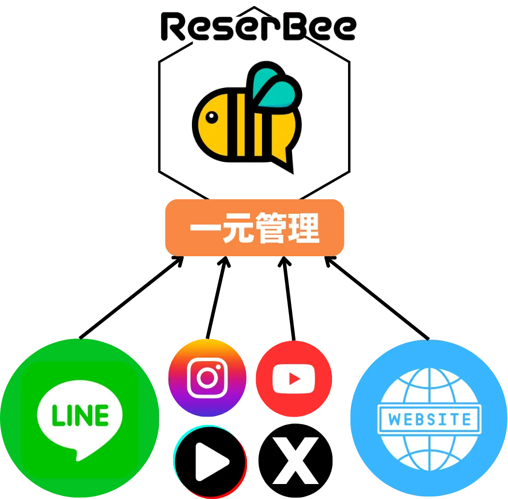 ホームページ・SNS・LINEで受けた予約を、別々のシステムで管理するのが大変。